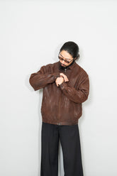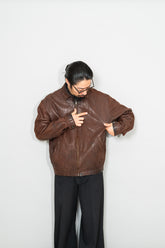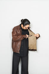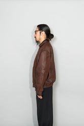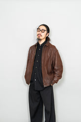 特にこのモデルは、当時から男の理想像を体現するアイテムとして語り継がれており、オーセンティックな佇まいと無骨な色気が共存した稀有な存在です。袖を通した瞬間に伝わる重量感としなやかさ、肩にのるフィット感はラムレザーならでは。着込むほど身体に馴染み、自分だけのシワが刻まれていく、その経年変化こそが最大の魅力です。