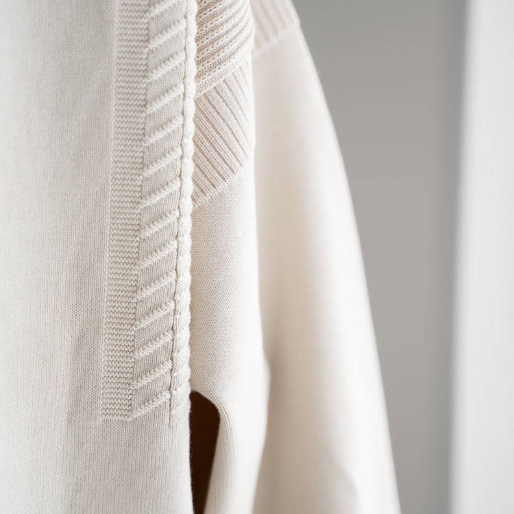 両Vのスウェットトレーナーをモチーフとして、ディテールを編み地で表現したデザイン。