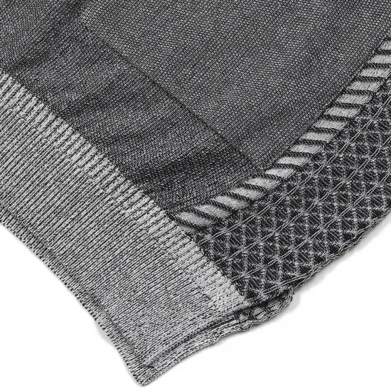 プレーティング編みと言われる表目側と裏目側で異なる糸を編む技法を使用し、表と裏で糸の色を変えて、2色で編むことで奥行きのある表情に仕上げました。