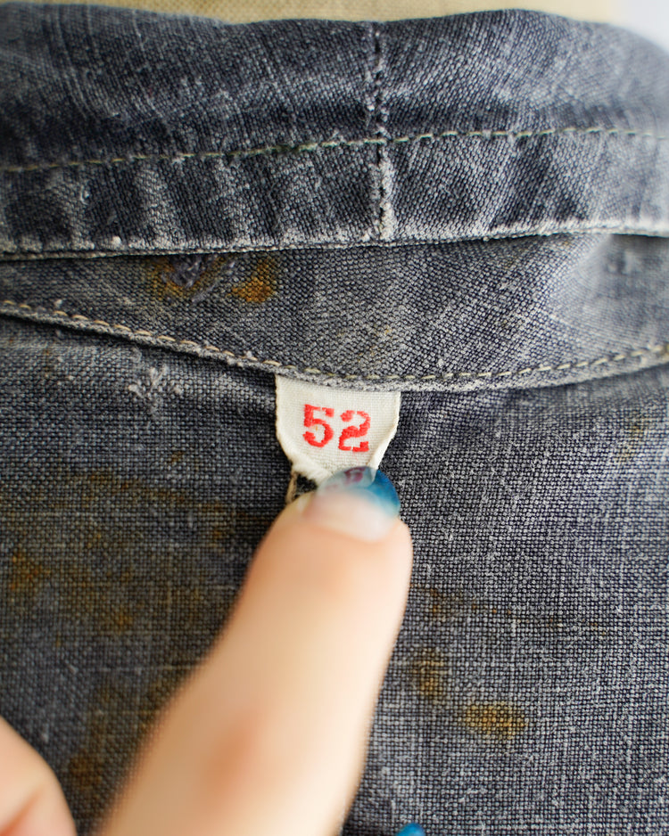 1940's French Vintage "AUMOLINEL" Indigo linen maquignon coat biaude