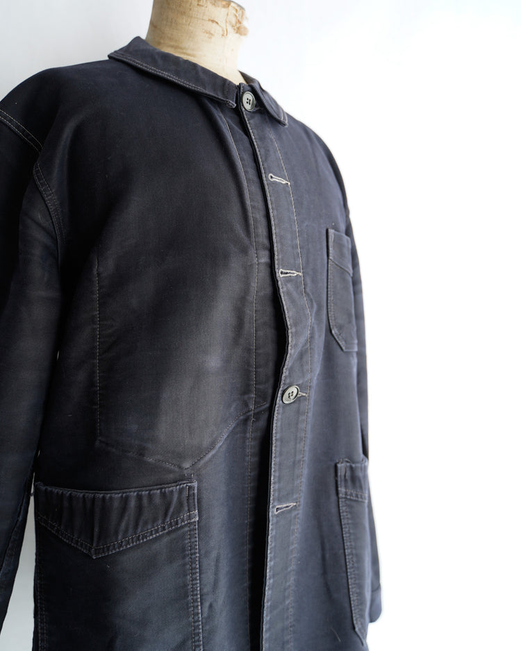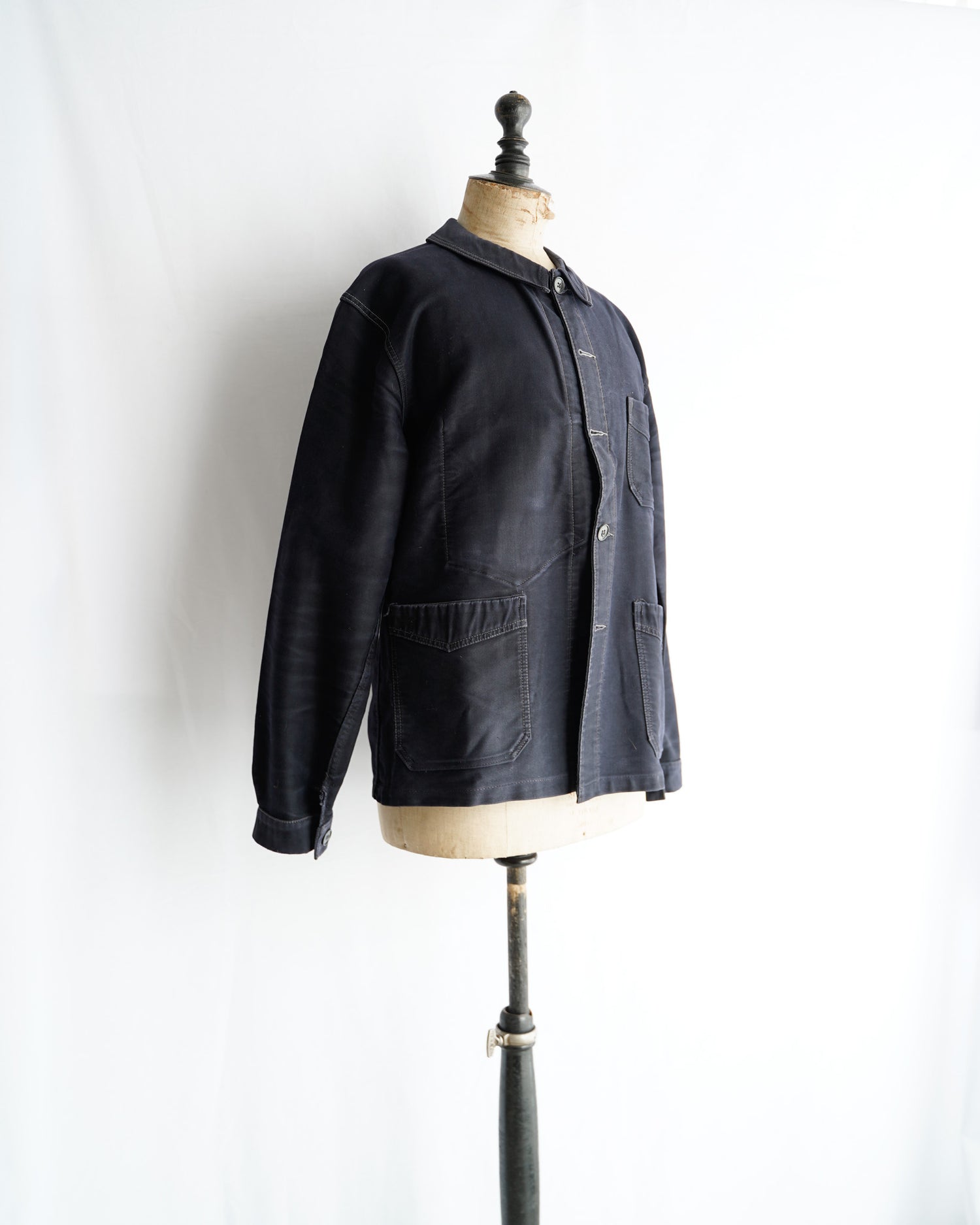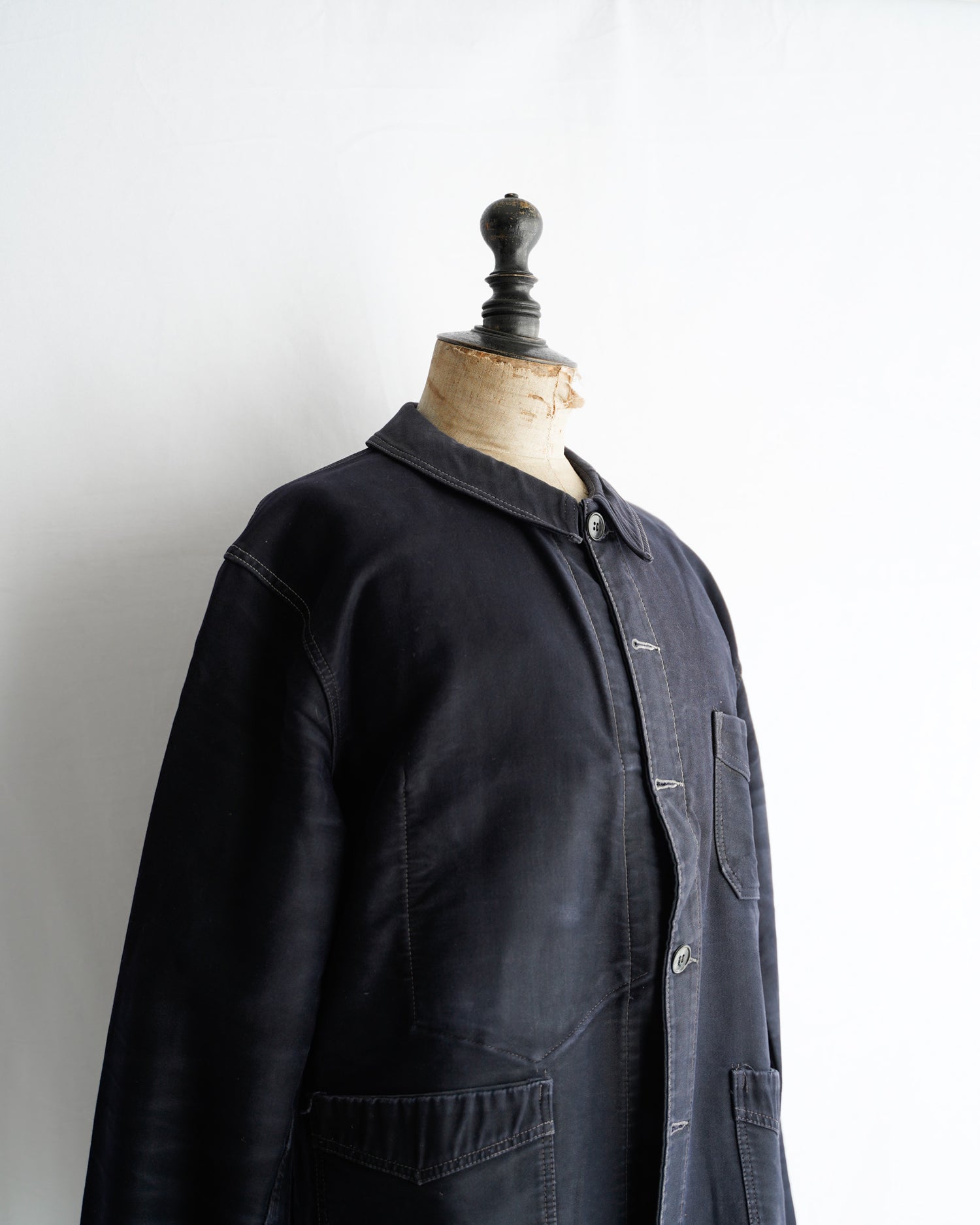 1940's French Vintage "BEAUFORT" Black moleskin Work Jacket "V pocket"