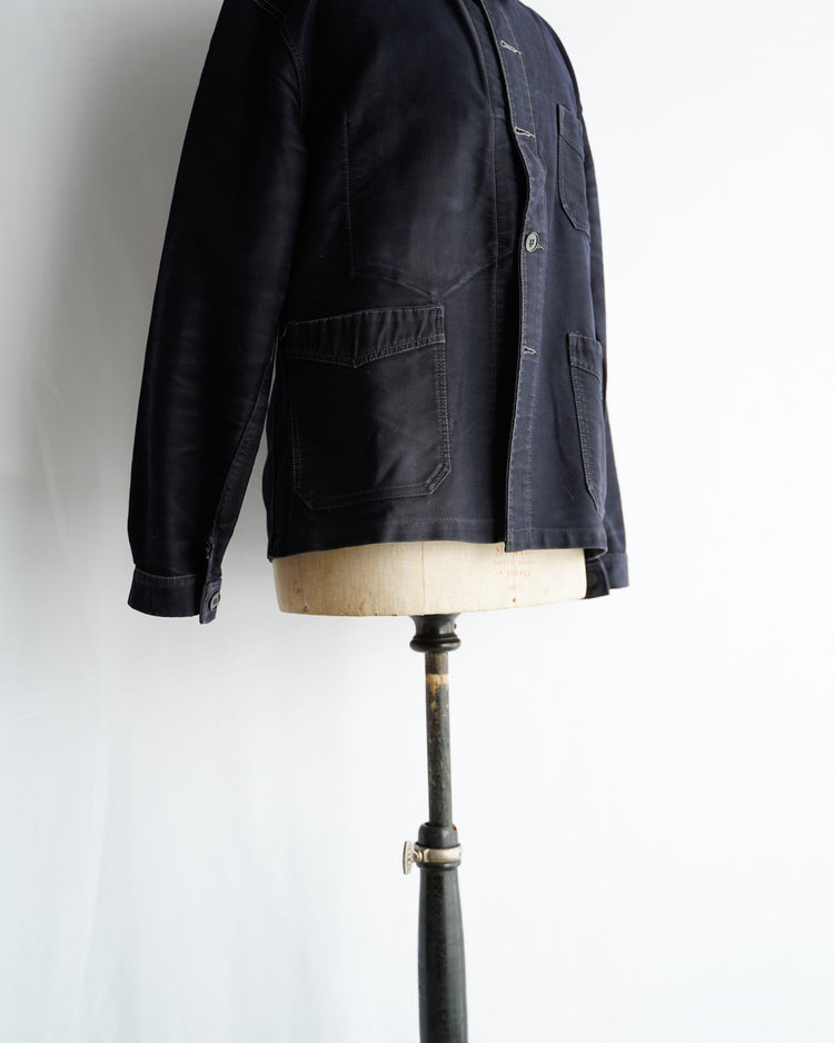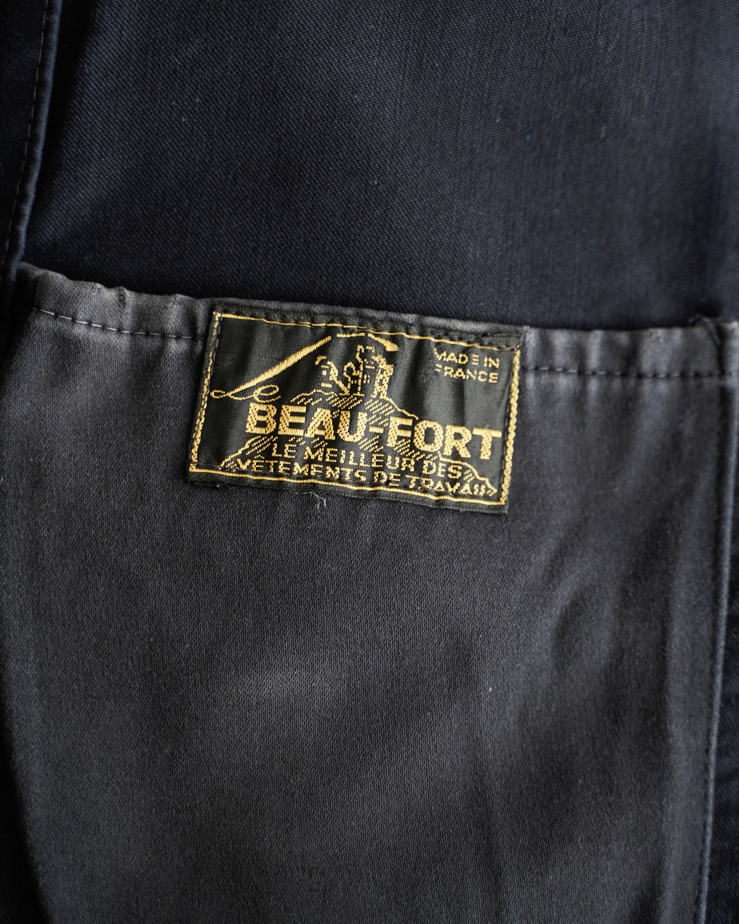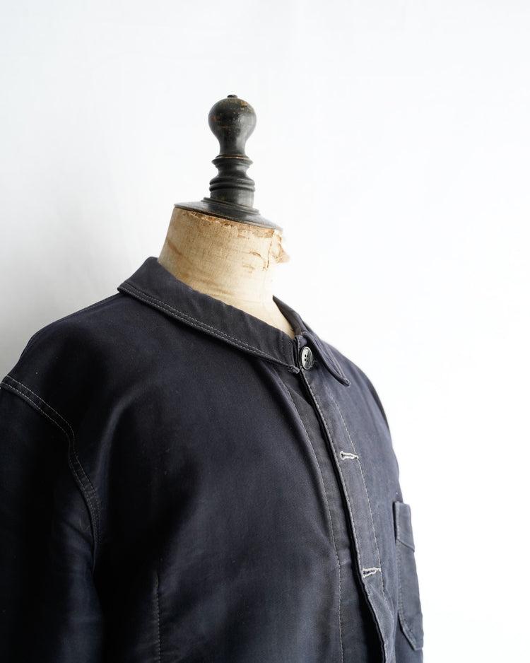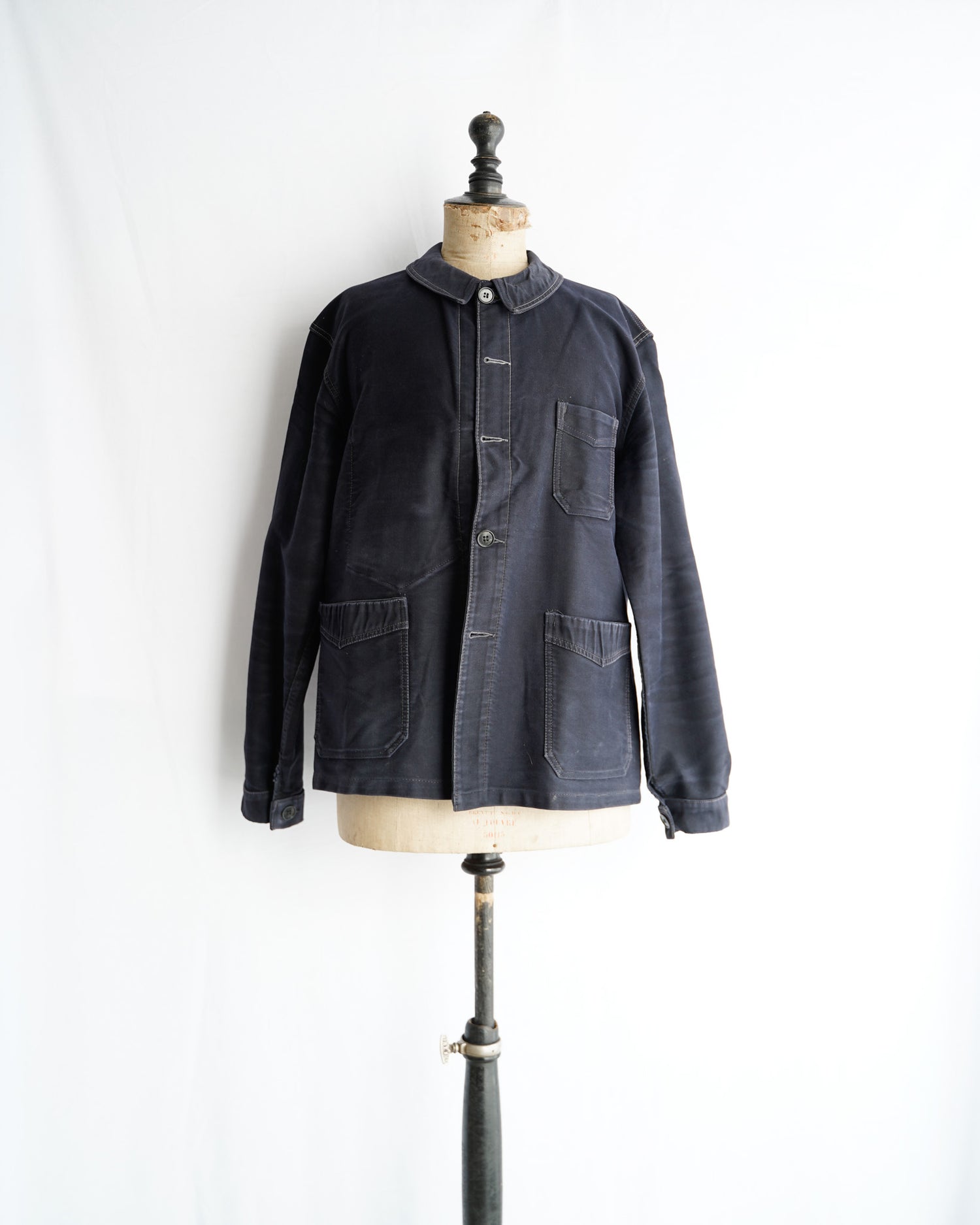 1940's French Vintage "BEAUFORT" Black moleskin Work Jacket "V pocket"