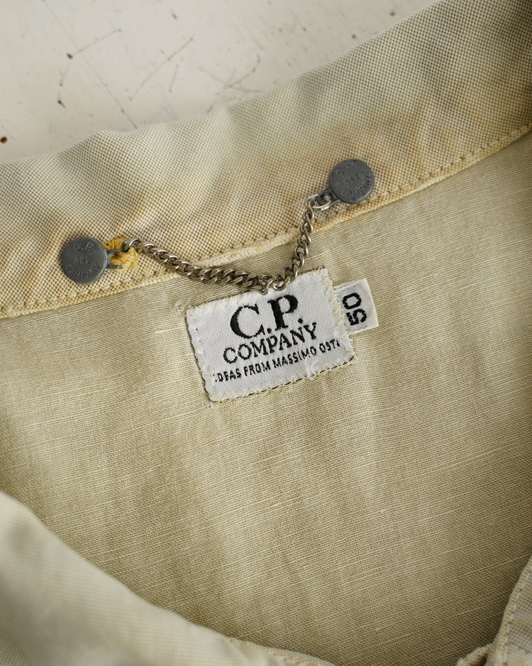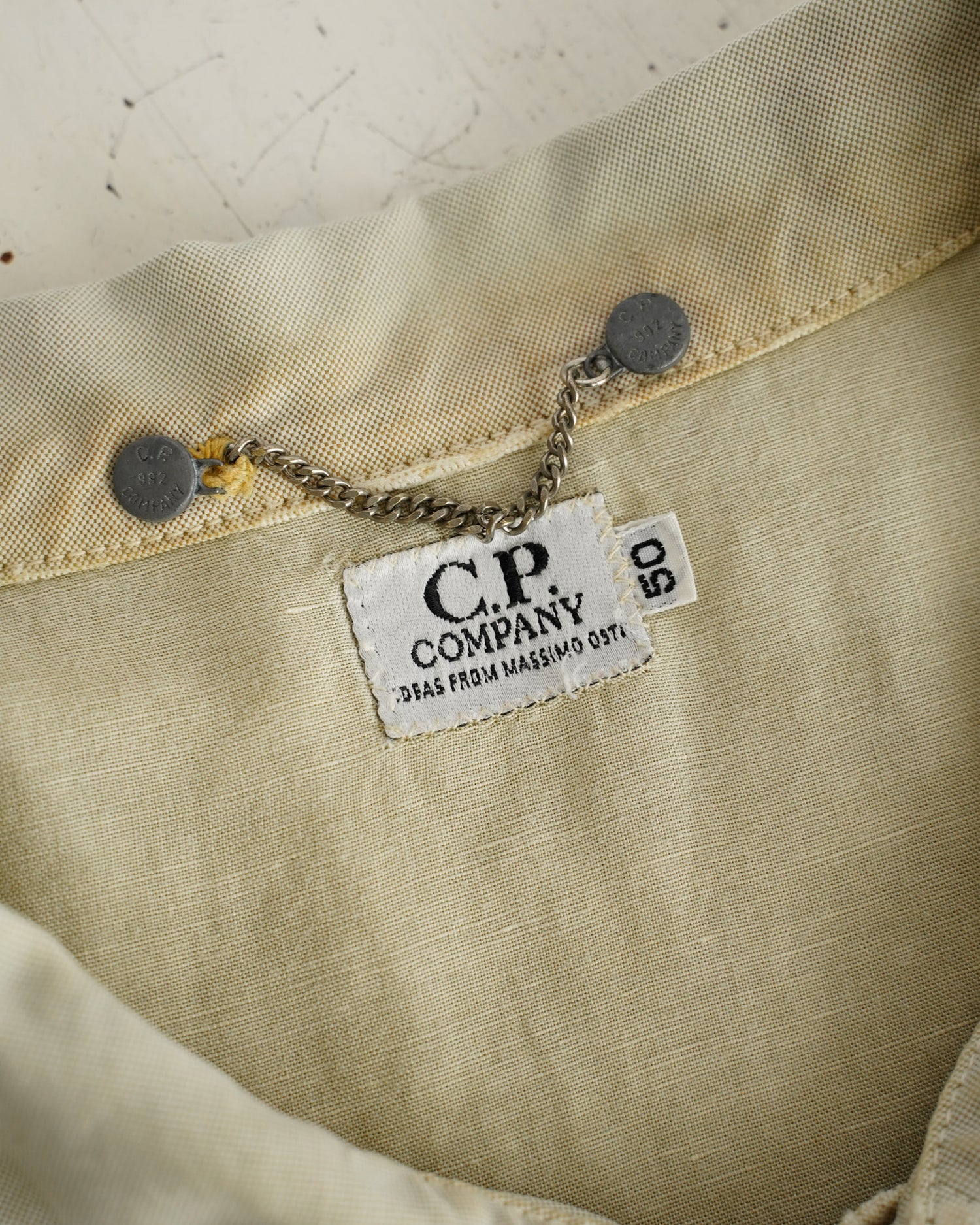 特にマッシモ・オスティ期のC.P. Companyは、今日の市場においても非常に貴重であり、コレクターズアイテムとして高い評価を受けています。後年のプロダクトとは一線を画し、オスティの思想とクリエイティビティがダイレクトに反映されたプロダクトは、単なるファッションを超えてデザイン史の一部として語られる存在です。その中でもコンディション良好なジャケットは数少なく、本品のような状態で残っていること自体が奇跡に近いといえるでしょう。