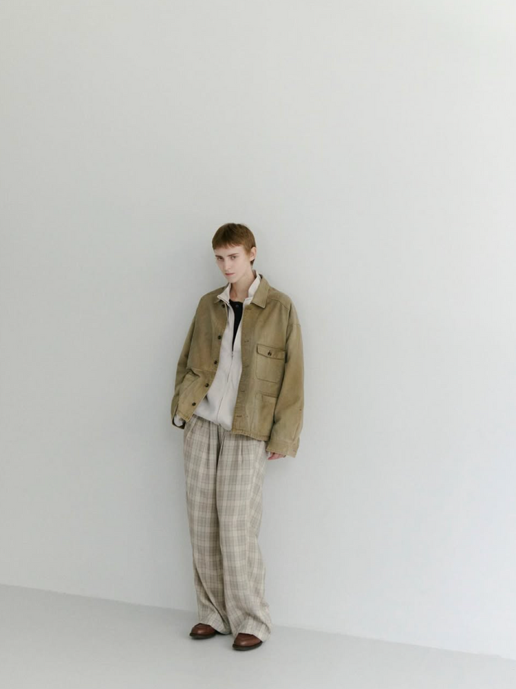 ANCELLM AGING CHECK BELT-LESS SLACKS