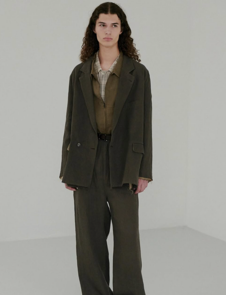 リネンとナイロンのざっくりとした肌当たりから羽織り心地が良く、