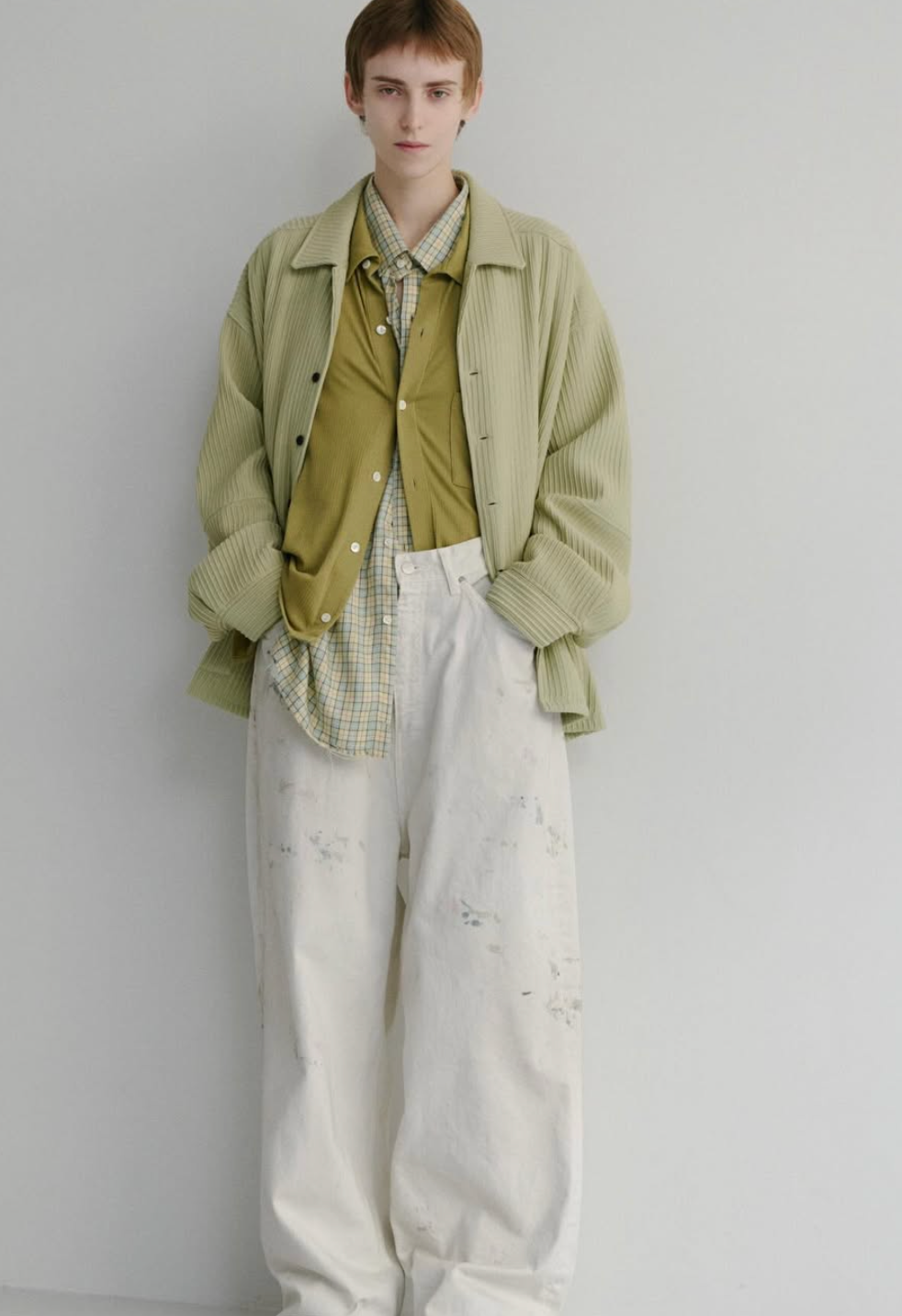 分量を広げたオーバーシルエットを生地の落ちの良さが