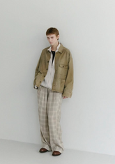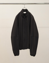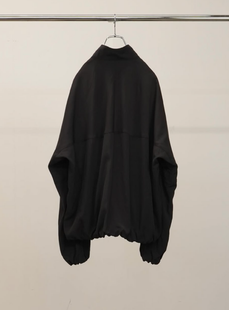 レーヨンの滑らかなトロミと首元に畳んだタックから、美しいドレープが揺れ、艶と陰が流れ落ちる軽いブルゾン。ウエストに丸みを設けることで腰回りで溜まり、全体で立体を描く設計としています。