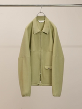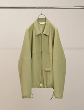 畝をストライプに見立てながら、立体感の強い生地に合わせて形状はシンプルに設計。ボトムスを引き立てるよう短めの丈に設定し、アクセントにフラップを配置。シャツとしてもジャケットとしてもお楽しみ頂けるバランスです。