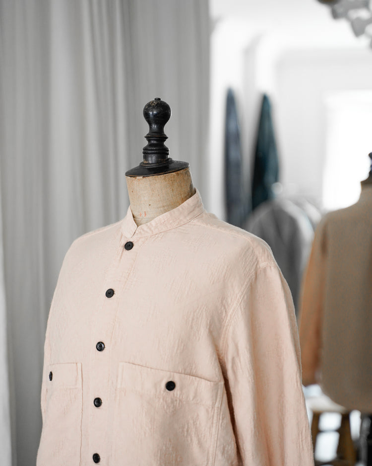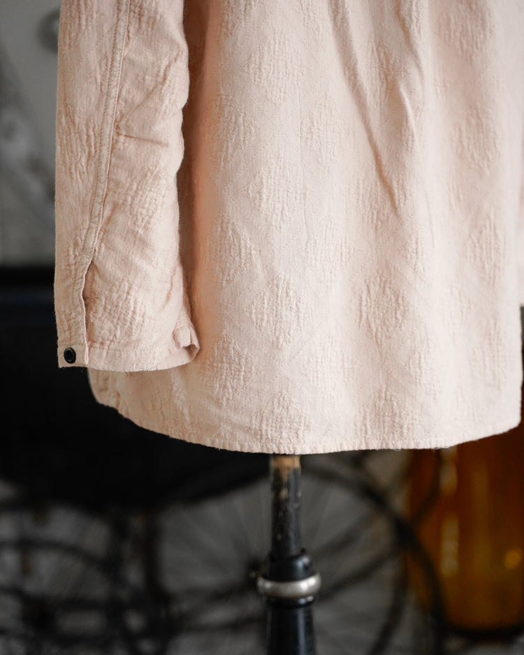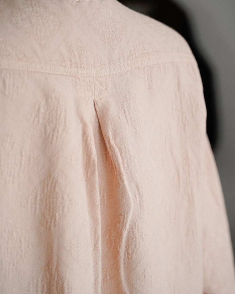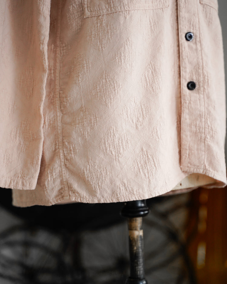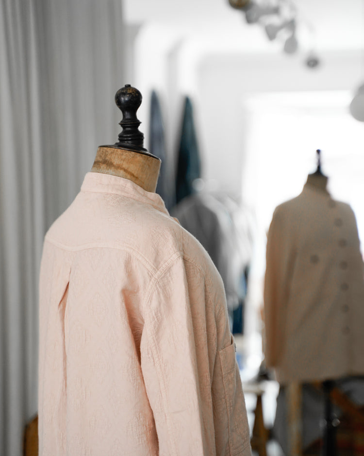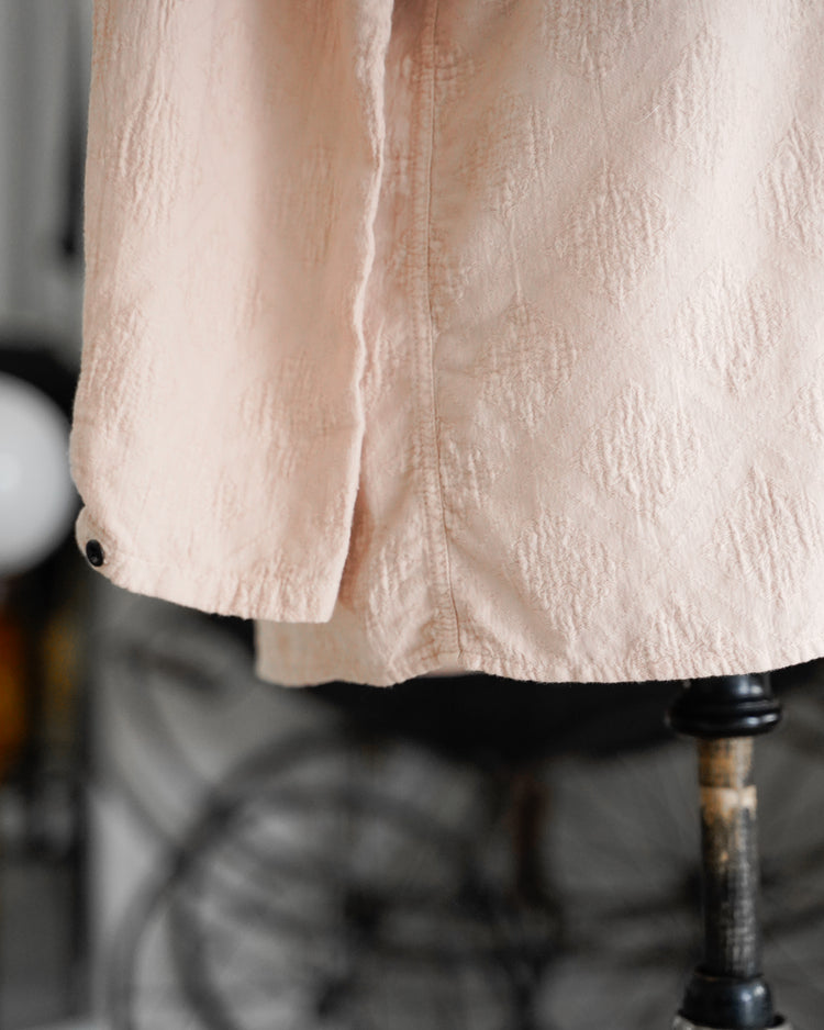 アンティークのポルトガルのタイルの柄を参考にジャガード織機で織ったオリジナル生地。カラーは蘇芳染めなどで染色したピンク。