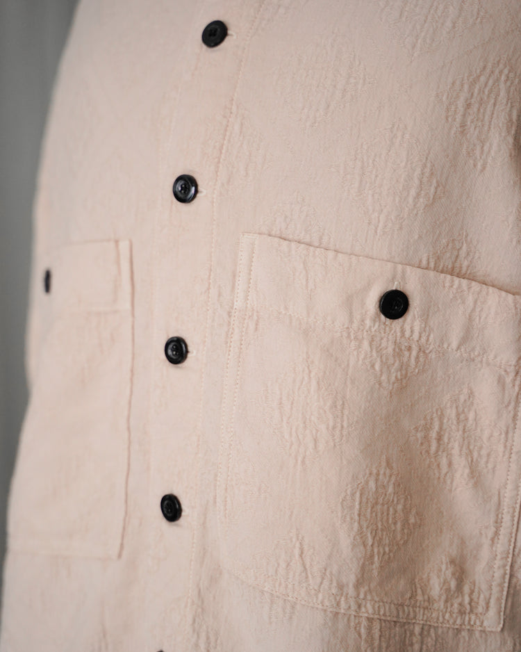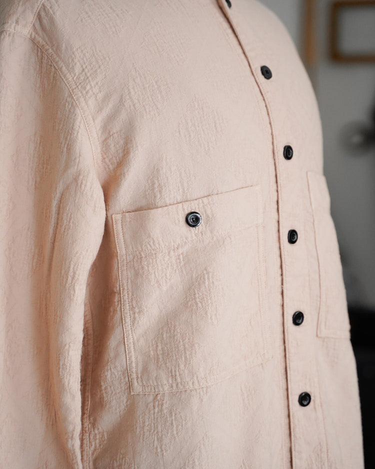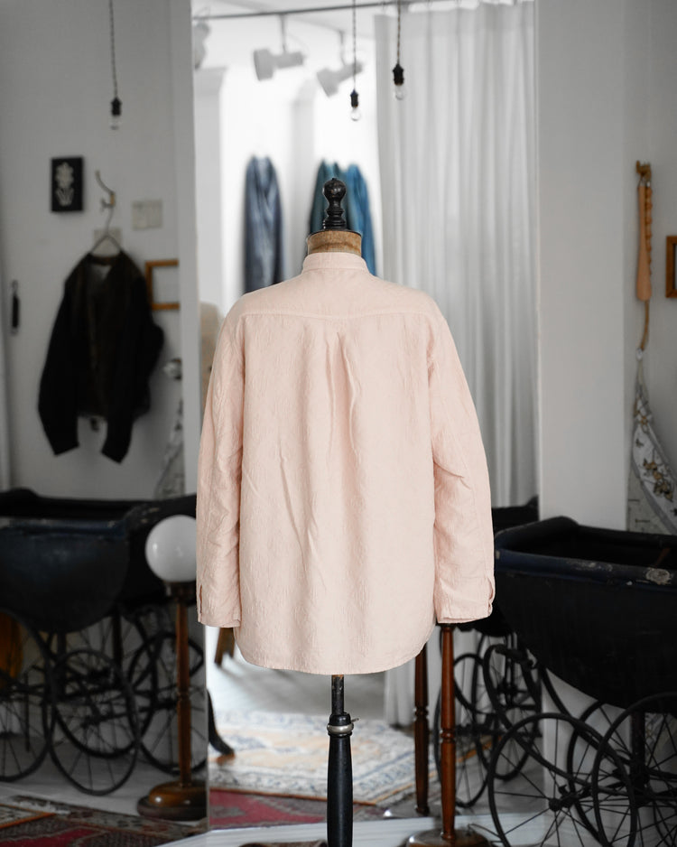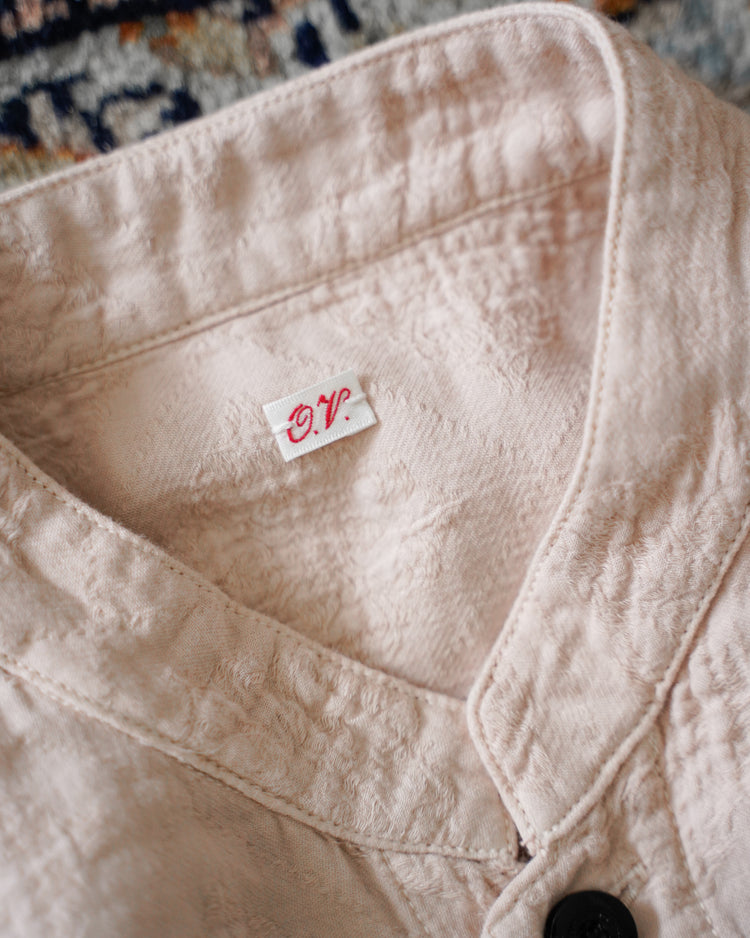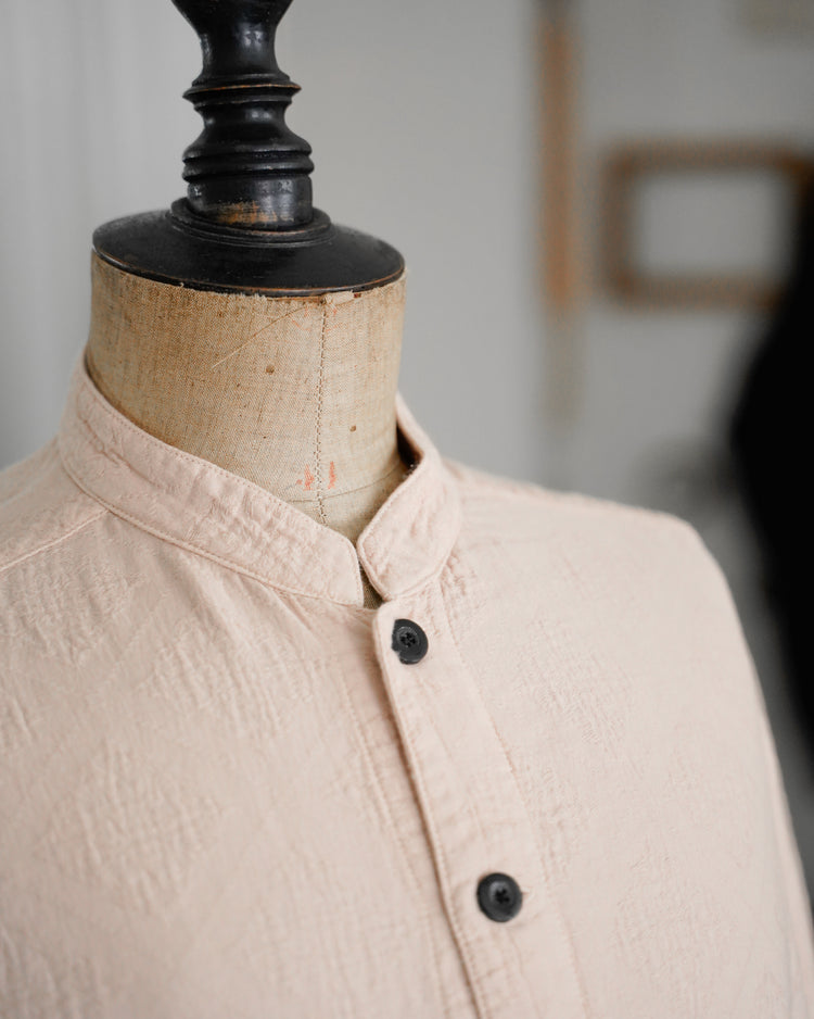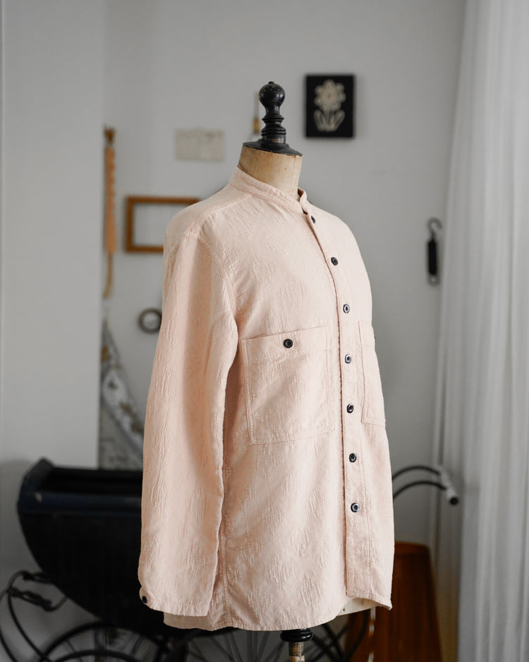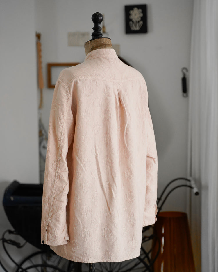アンティークのポルトガルのタイルの柄を参考にジャガード織機で織ったオリジナル生地。カラーは蘇芳染めなどで染色したピンク。
