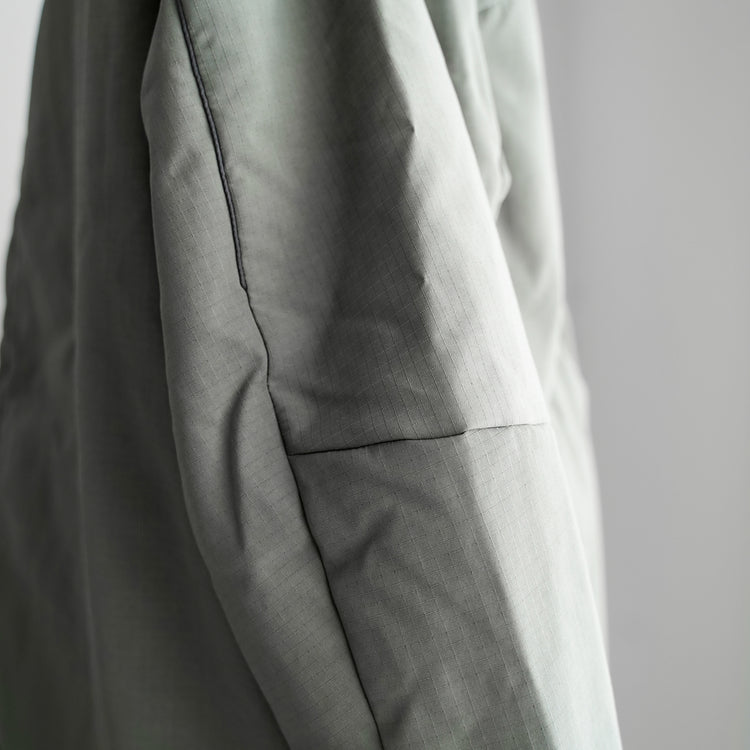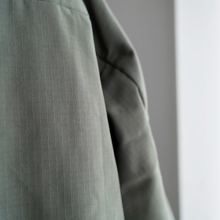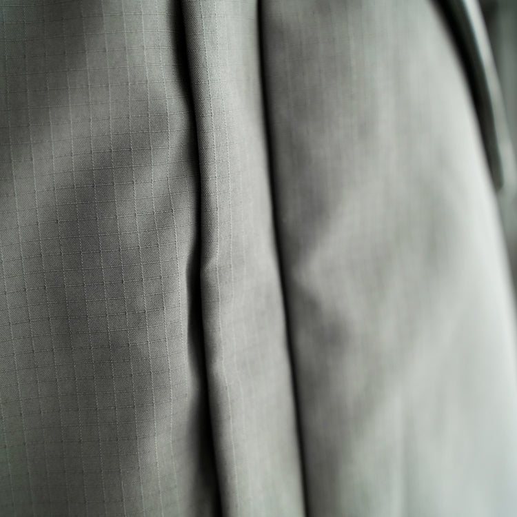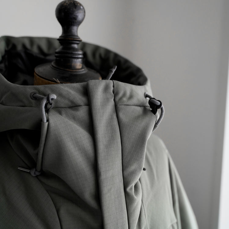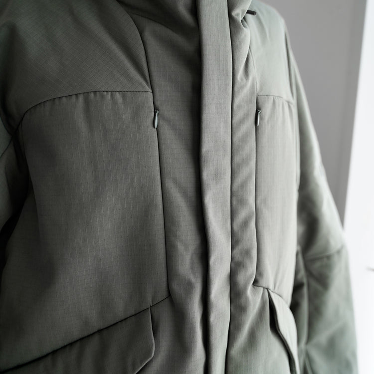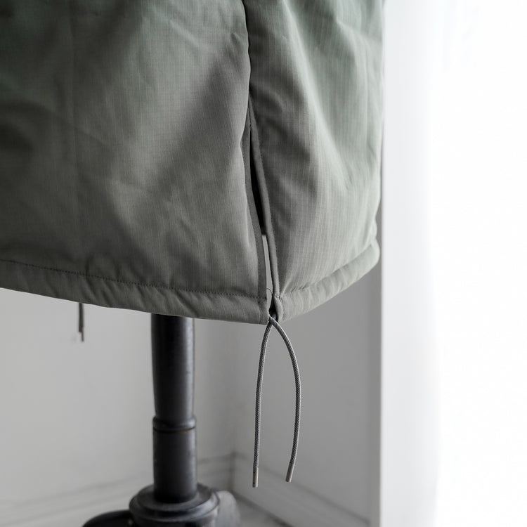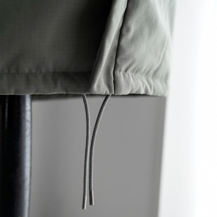 【バッグの代わりに着るという選択】というテーマを元に作られた、メッシュポケットや多機能ポケットで手ぶらで外出も可能な機能性も完備。表地にはハリ感のあるポリエステルミリタリーリップストップを使用。