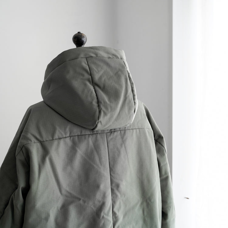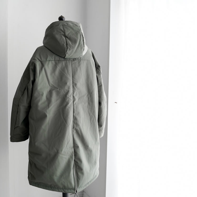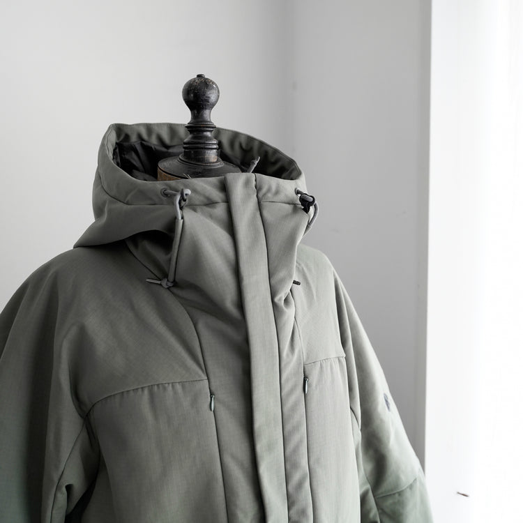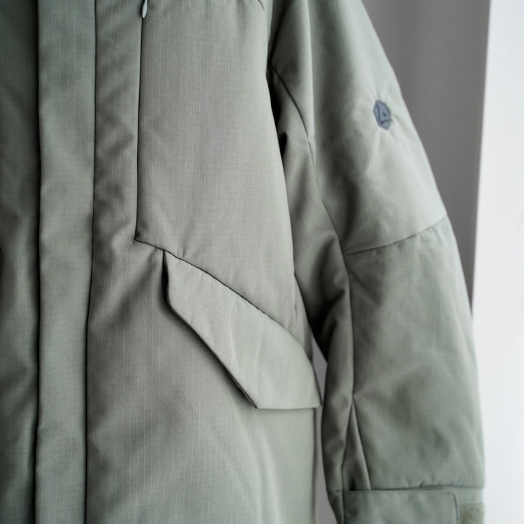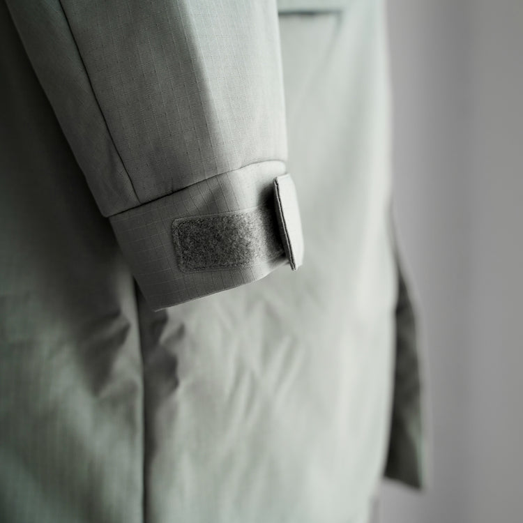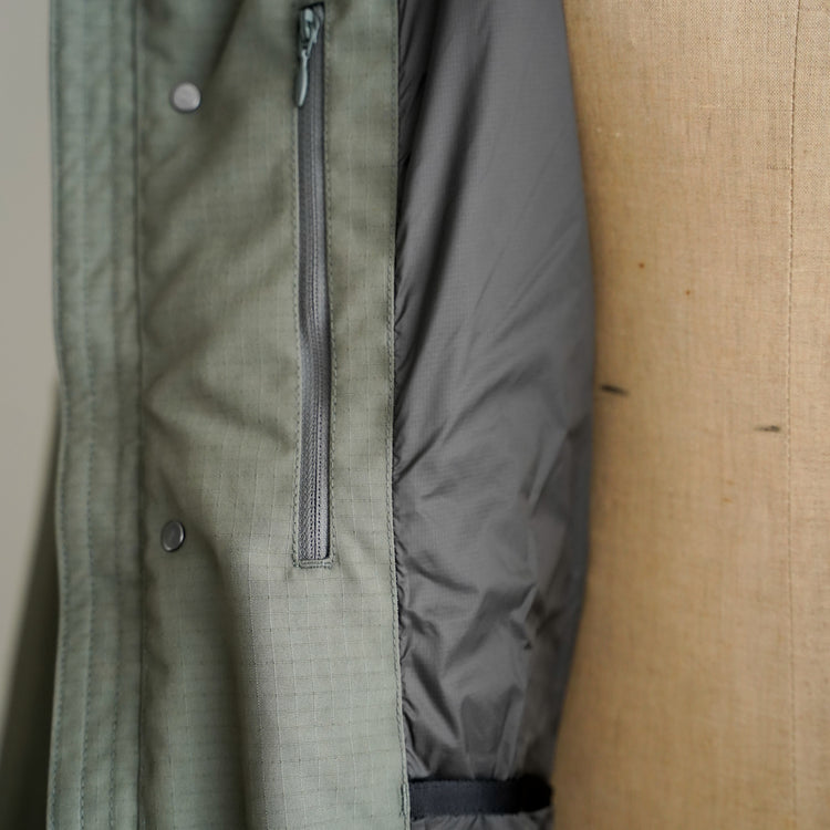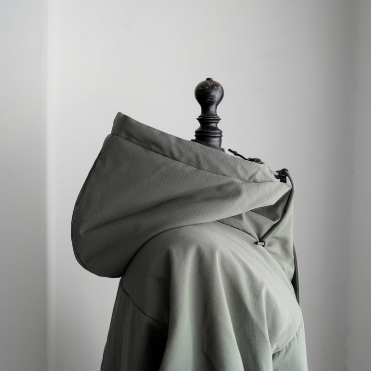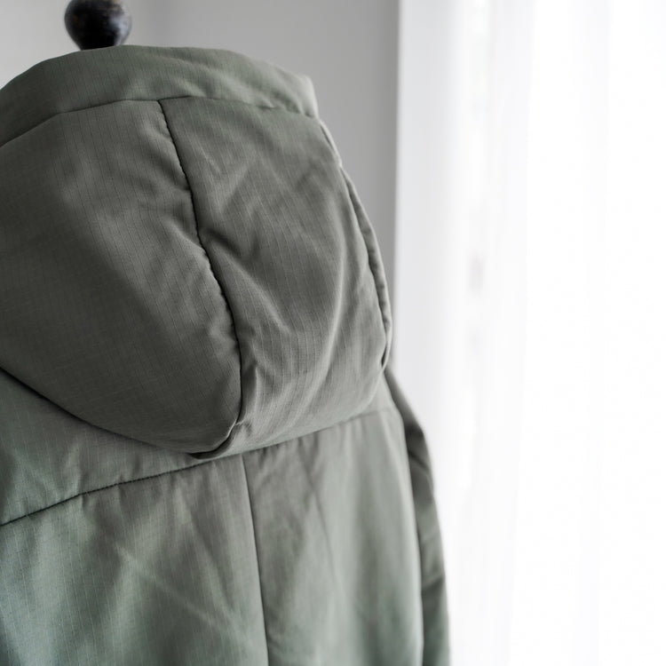 【バッグの代わりに着るという選択】というテーマを元に作られた、メッシュポケットや多機能ポケットで手ぶらで外出も可能な機能性も完備。表地にはハリ感のあるポリエステルミリタリーリップストップを使用。