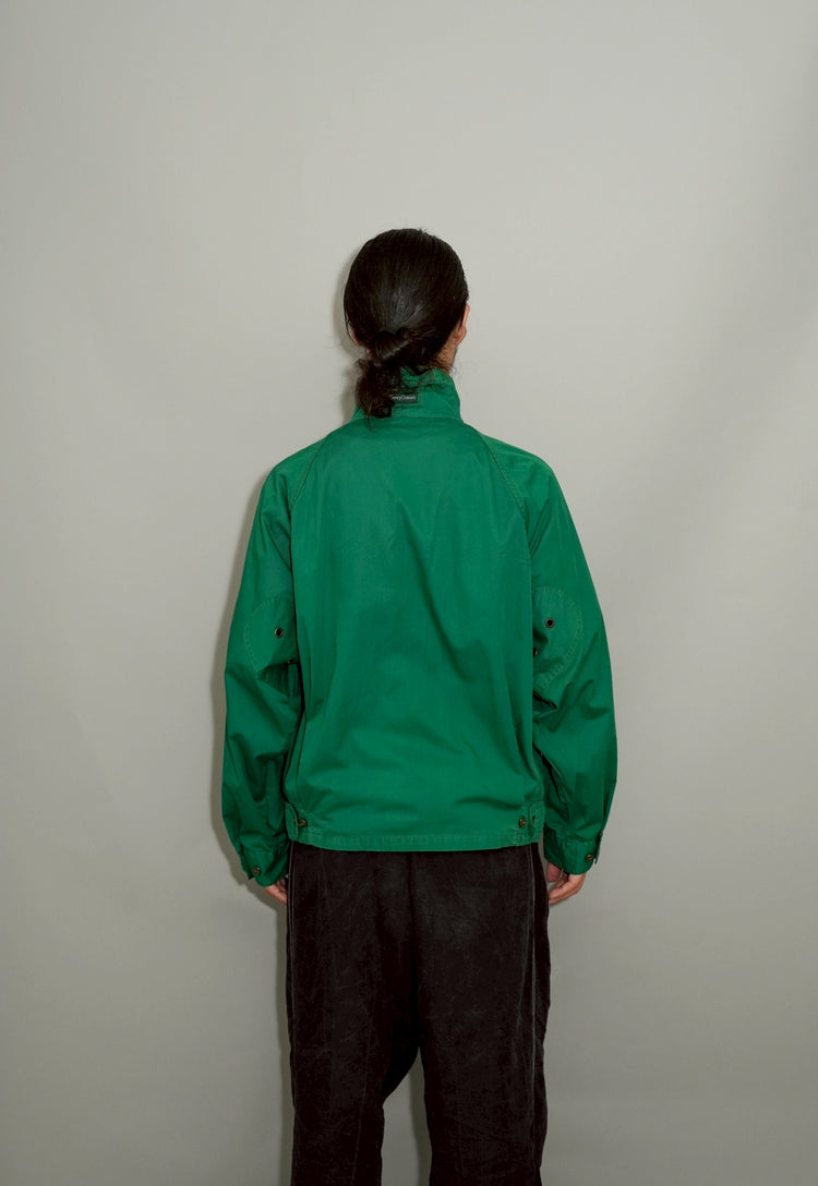 素材にはしなやかで耐久性のあるコットンが用いられています。1990年代のイタリア製らしく、糸の選び方から縫製に至るまで高い品質基準が徹底されており、シンプルなコットンジャケットでありながら、触れたときの安心感と着用時の快適さは特筆に値します。着込むほどに柔らかさを増し、経年変化によって独特の風合いを帯びていくのも魅力です。グリーンという色味は使い込むことでさらに奥行きを増し、現代のヴィンテージ市場においても大変映える存在感を放ちます。