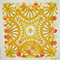 カレ一枚に対し平均25色が使われており、多いものでは40色以上の色彩がこの90cm四方に描かれ、一色毎に版を作り、プリントではなく染色の作業を行なっております。