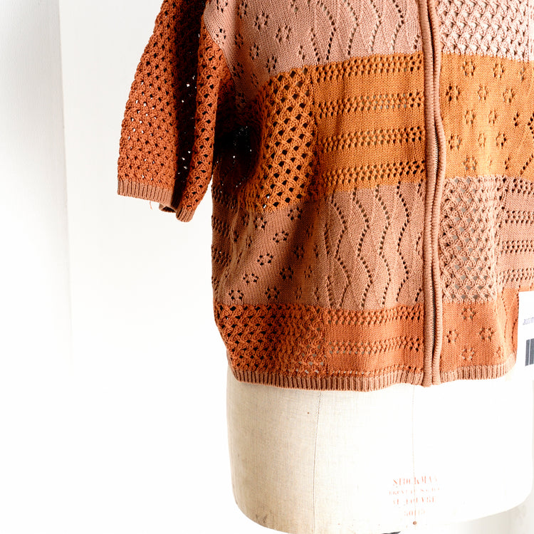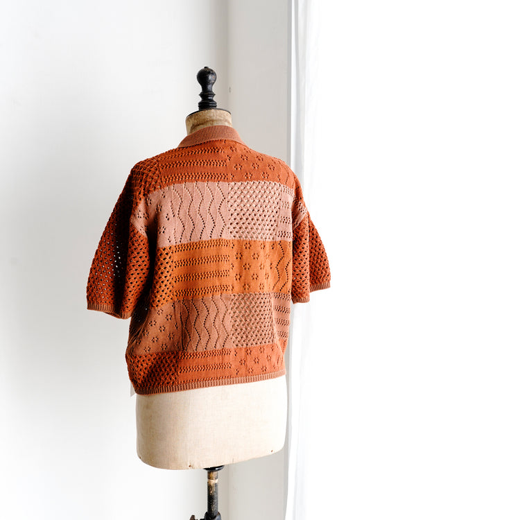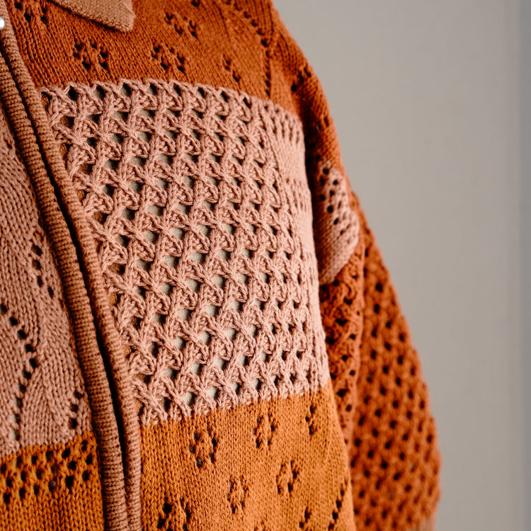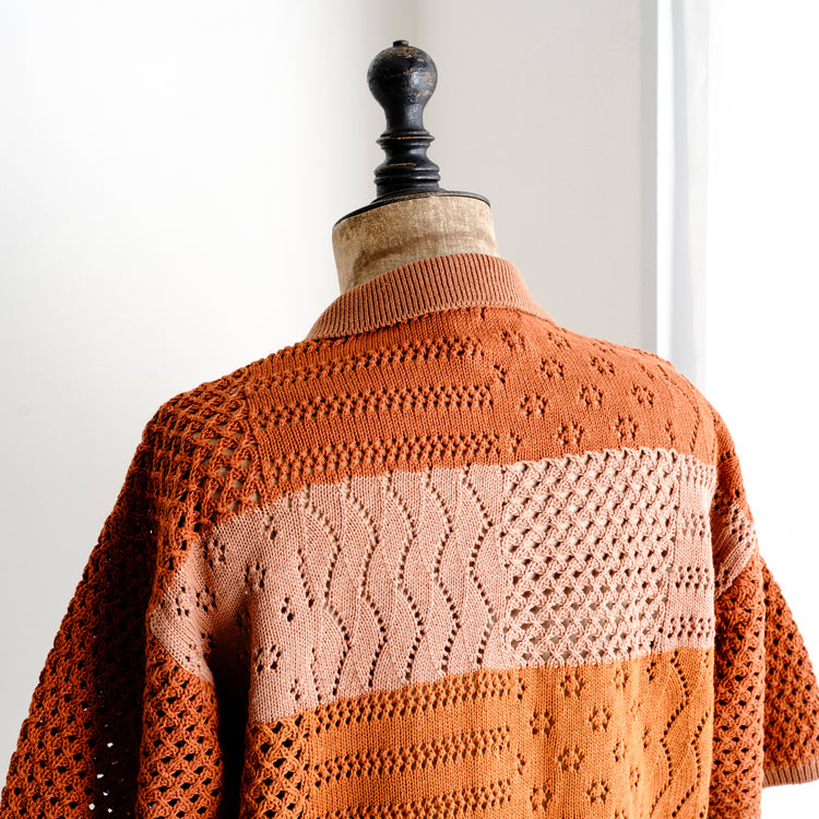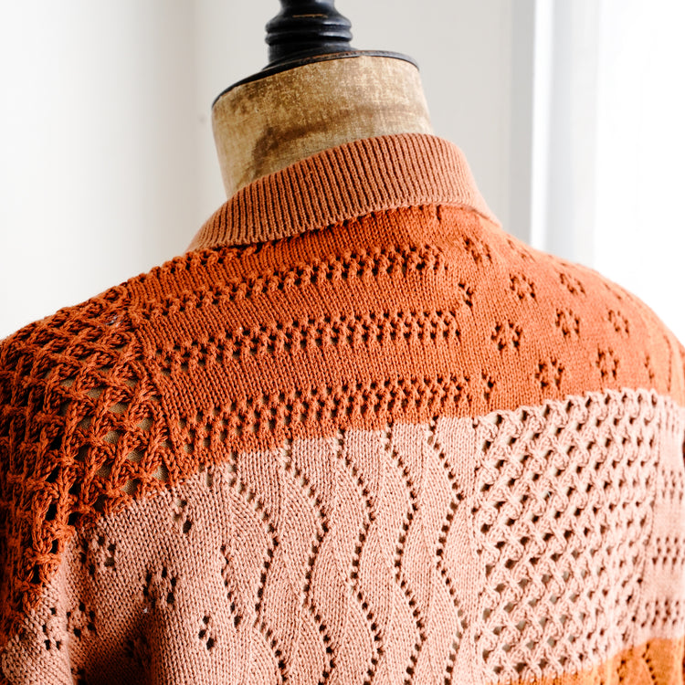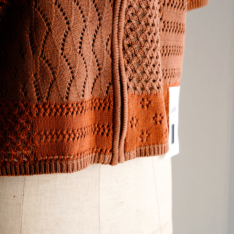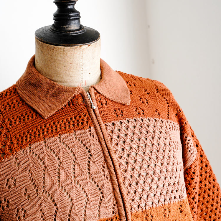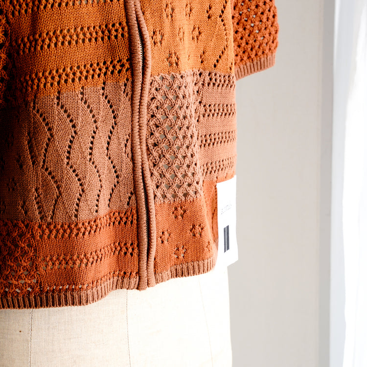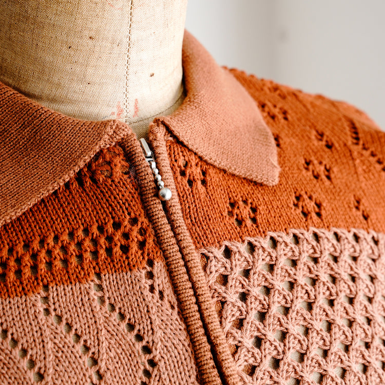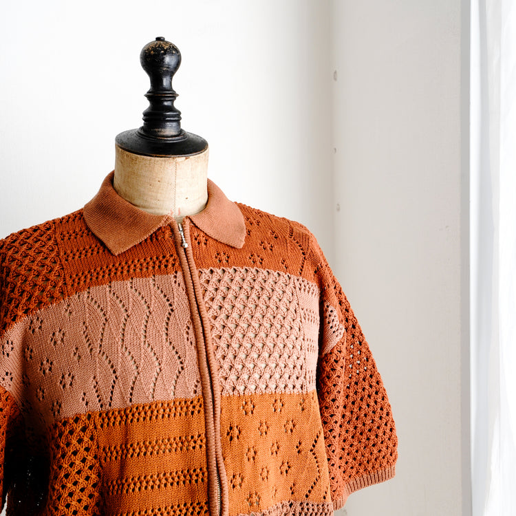 綿100%の糸でデザインしたジップアップ仕様のポロニット。