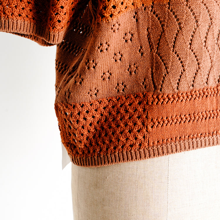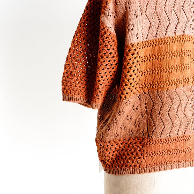 グラデーションカラーで3色の糸でボーダー柄にさせています、