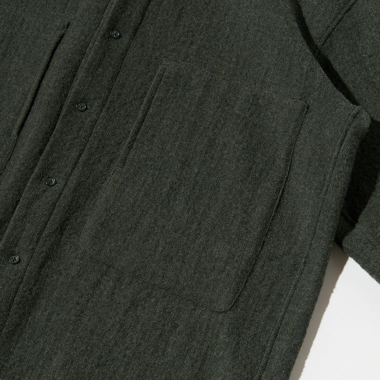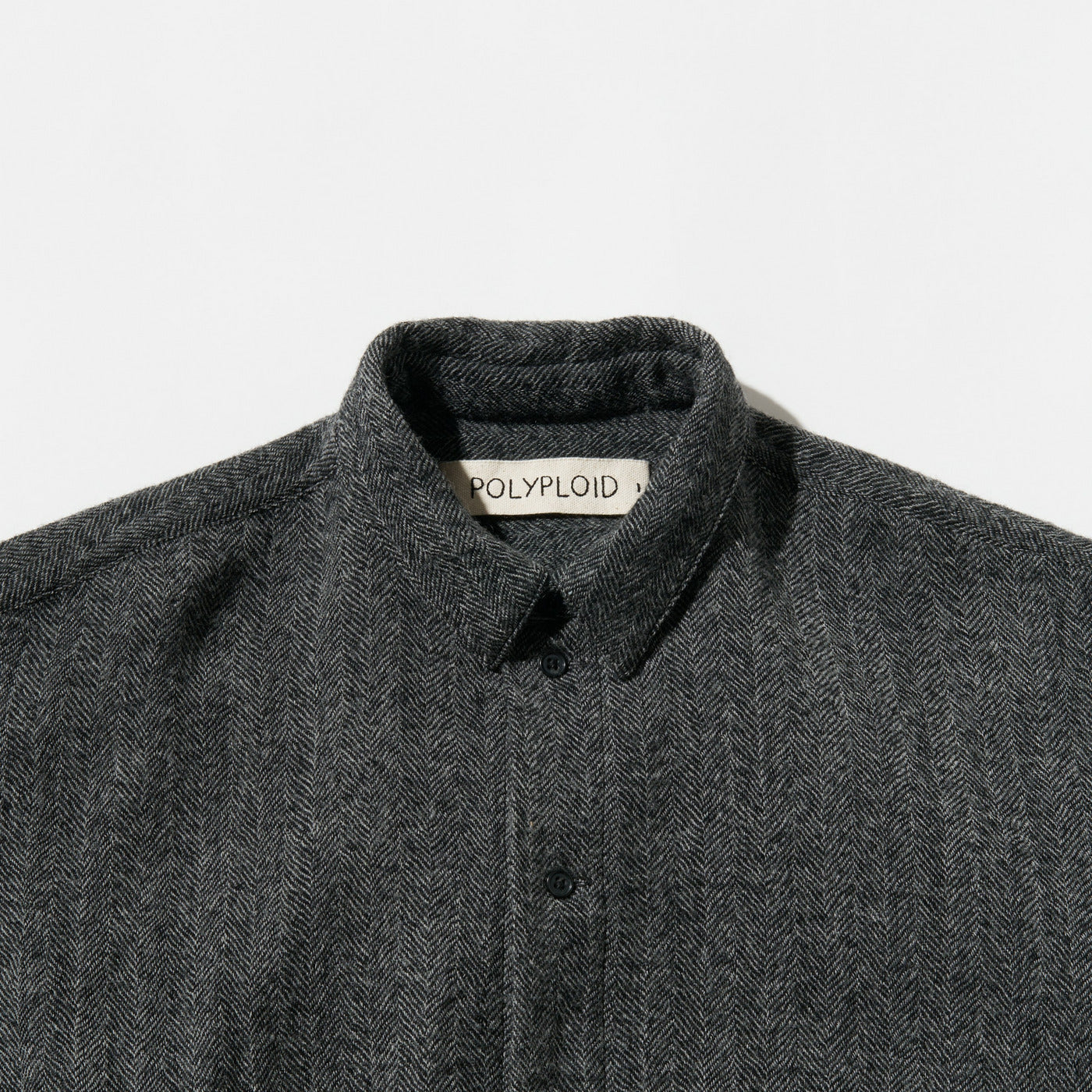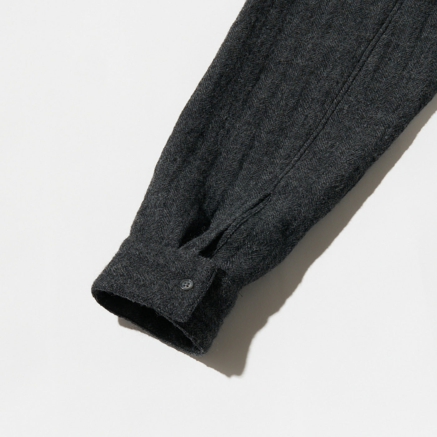縮絨加工で膨らみ感を出したヘリンボーン柄のウールガーゼ生地を使用しています。