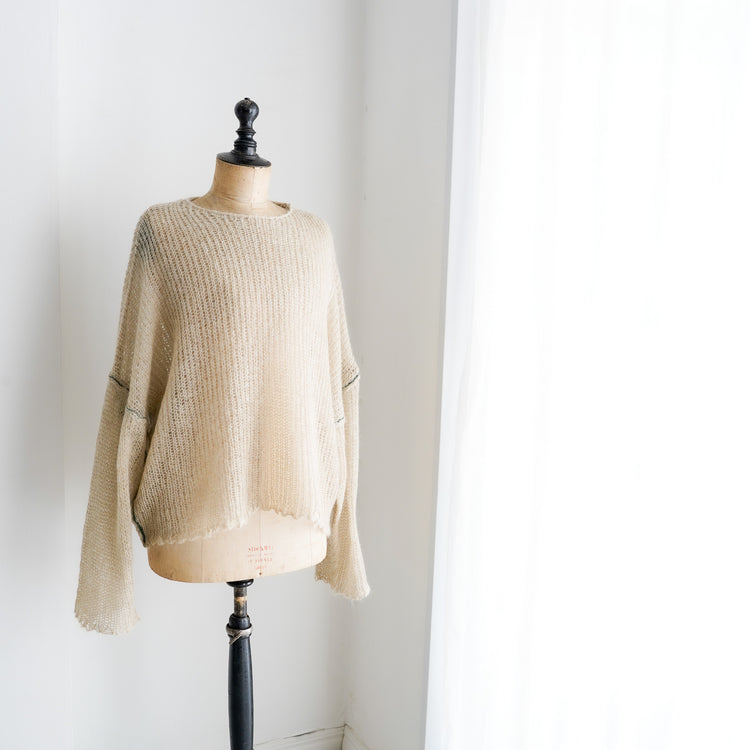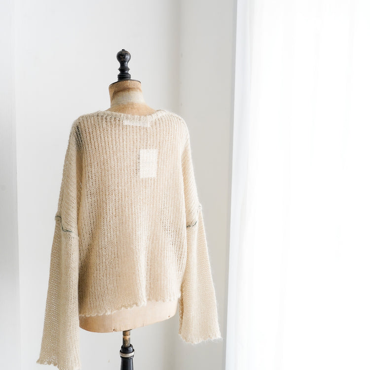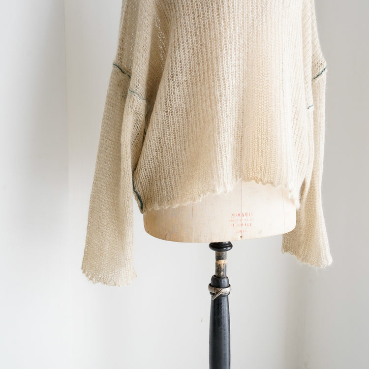 RESEARCHED BOAT NECK SWEATER MOHAIR MIX YARN